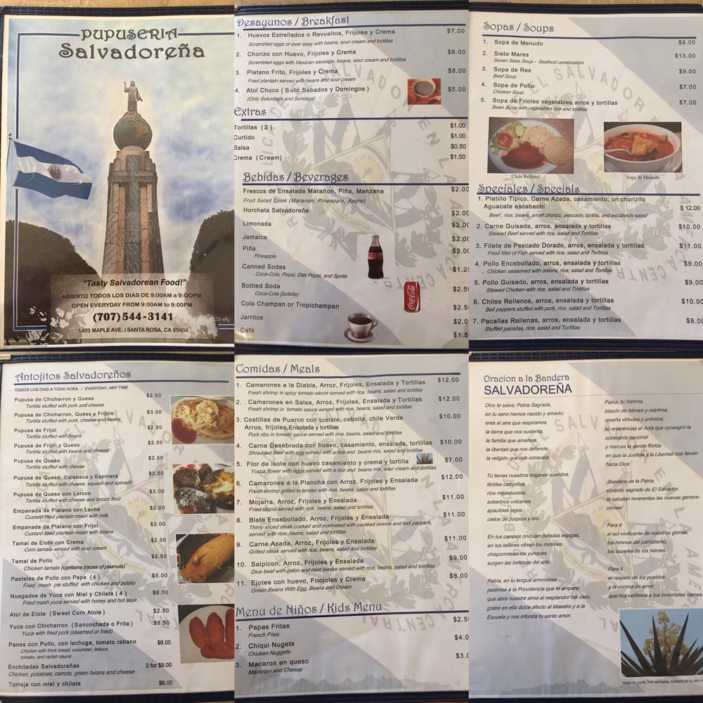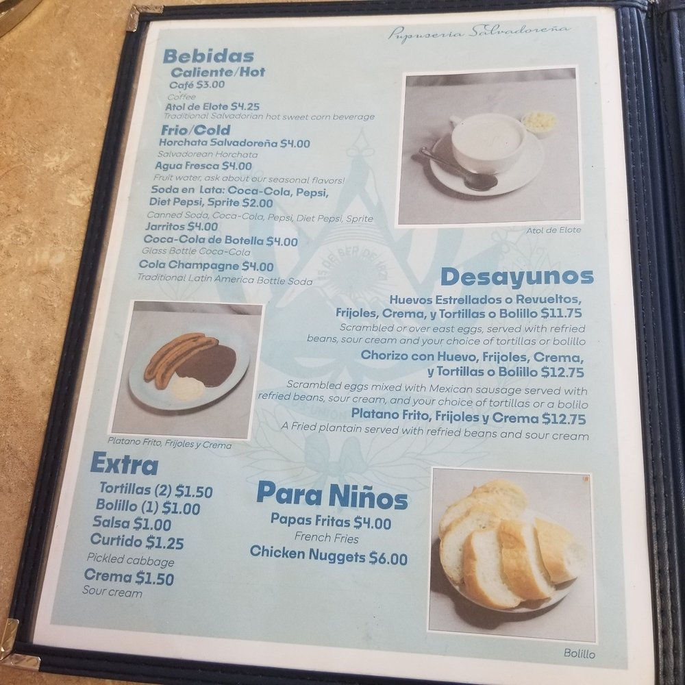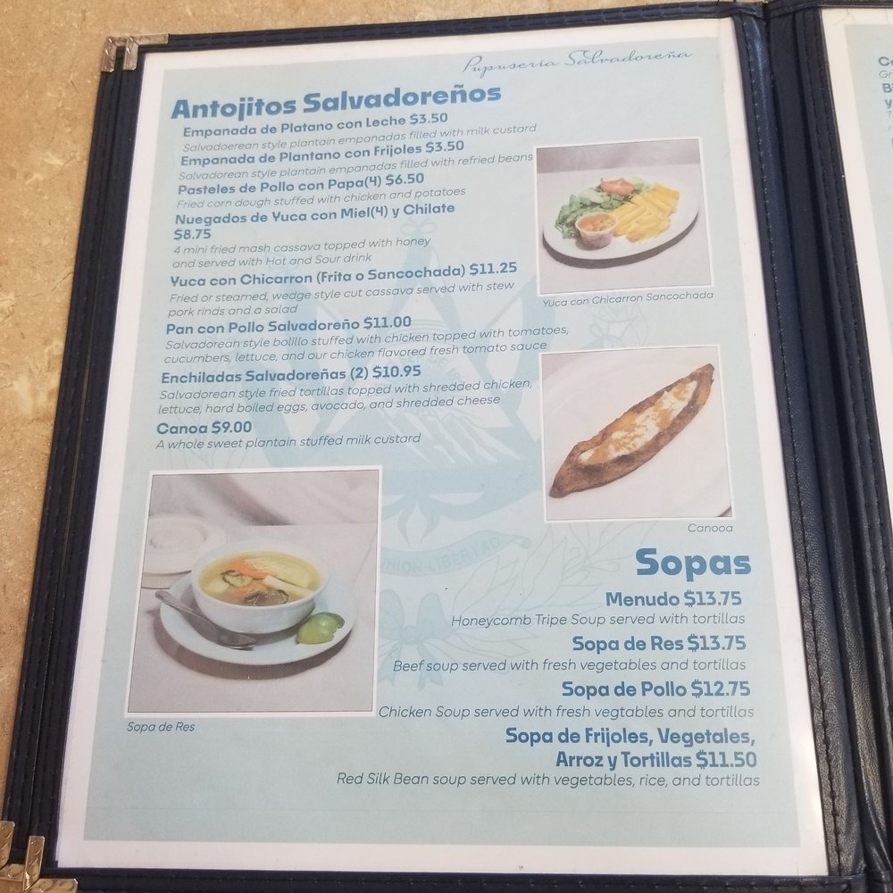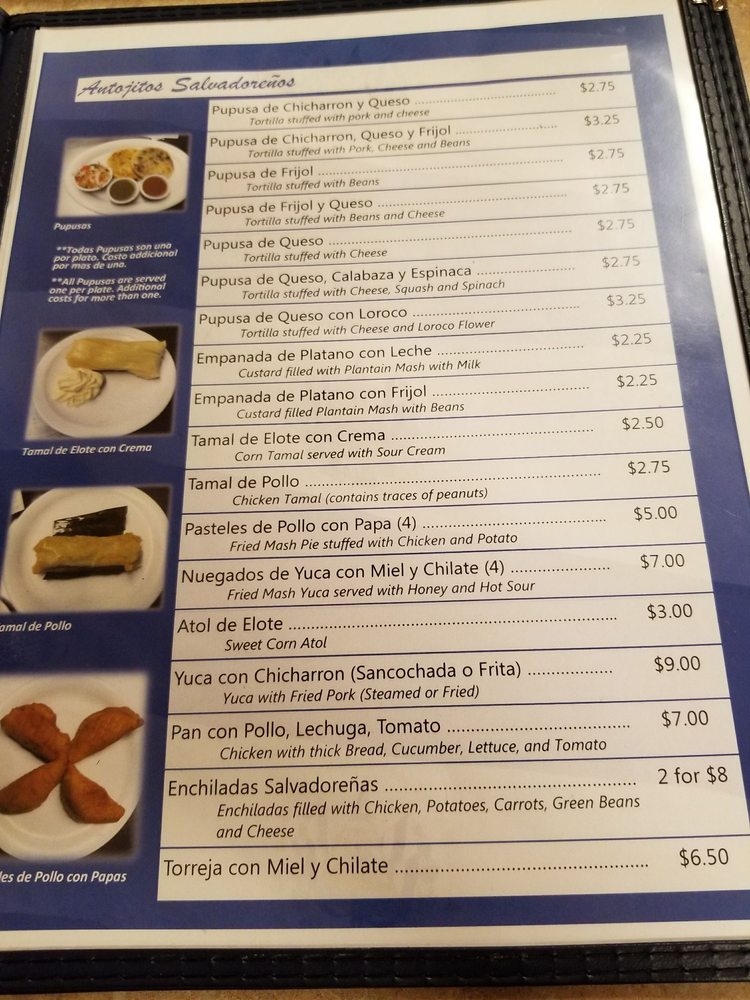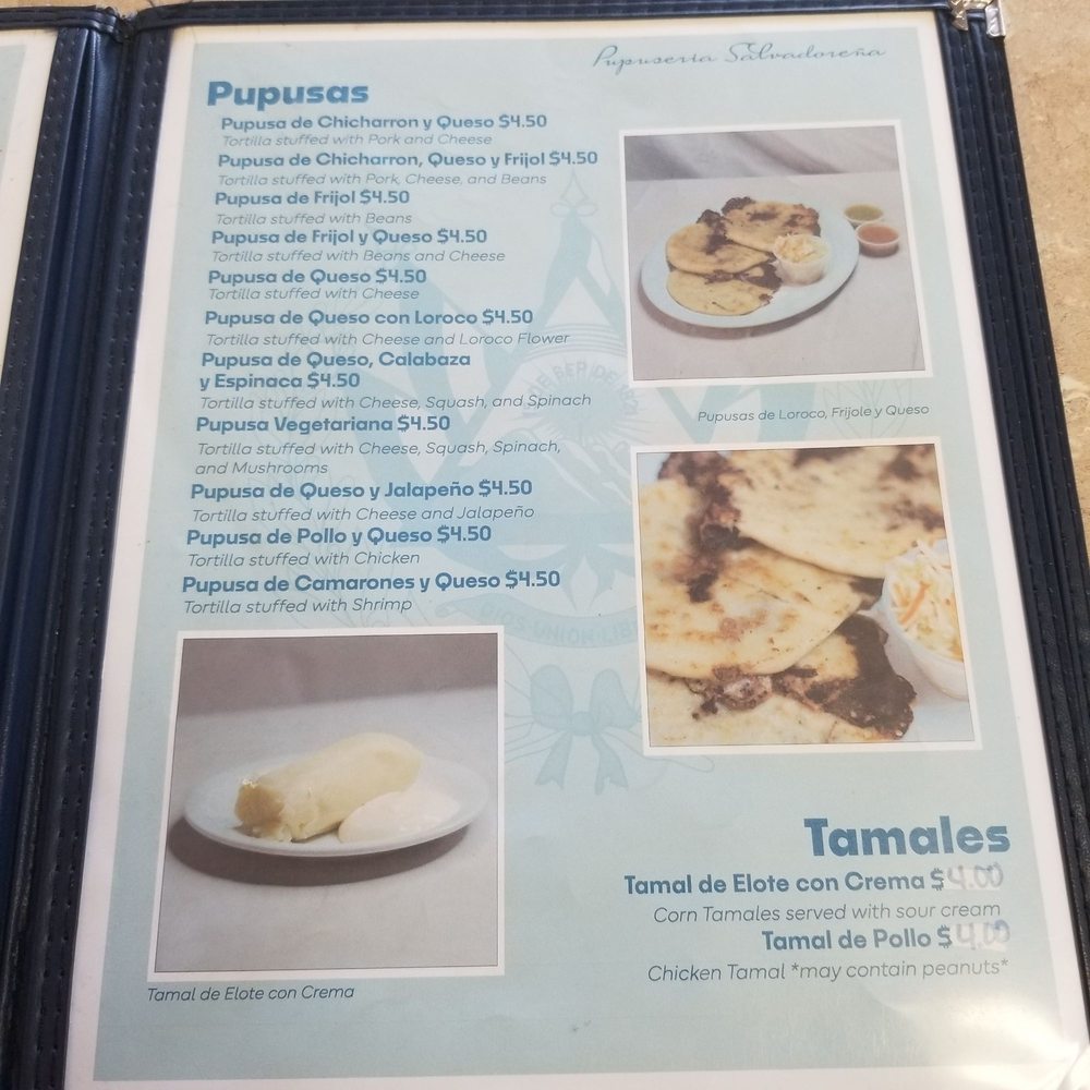 Pupuseria Salvadorena Menu